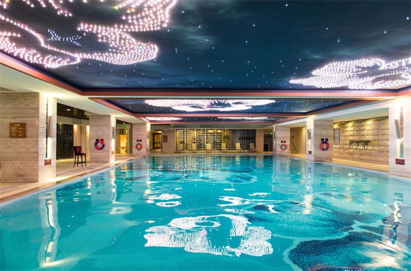 320平方米泳池水面面积,500平方米休闲活动与健身面积,水循环过滤系统采用的是臭氧消毒净化系统,室内装修、灯光效果特有风格:“天空花朵变,水中荷花现”,打造出室内游泳健身场所特有品牌。蓝湾康体中心健身器材均采用国外高质量产品,配备跑步机、椭圆机、综合训练机等设备,并有专业指导人员随时为您服务!